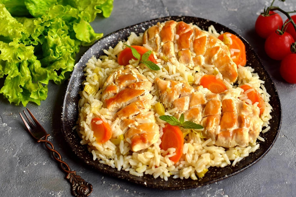 Готовим вкусное и сытное блюдо для семейного обеда. В одной сковороде тушим куриную грудку, овощи и рис. Перед смешиванием каждый компонент сначала подготавливаем отдельно. В результате у вас на столе будет полноценное блюдо, не требующие каких-либо дополнений. Рецепт очень простой, блюдо легкое и диетическое.