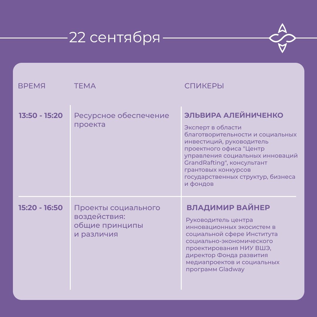 В течение второго модуля прошли вебинары, которые познакомили участниц с ведущими передовыми методиками и практиками в области социального проектирования. Важной задачей было познакомить участниц с лучшими российскими и международными примерами значимых социальных проектов. В течение вебинара «Методы поддержки и продвижения социальных проектов (ресурсное обеспечение проекта)» участницы поняли, какие ресурсы нужны для реализации проектов, кого можно привлечь и что может быть ресурсом для проекта. Спикером вебинара стала Эльвира Алейниченко – эксперт в области благотворительности и социальных инвестиций, руководитель проектного офиса «Центр управления социальных иноваций GrandRafting», консультант грантовых конкурсов государственных структур, бизнеса и фондов. Другой вебинар был посвящен теме «Проекты социального воздействия: общие принципы и различия», спикером которого был руководитель центра инновационных экосистем в социальной сфере Института социально-экономического проектирования Н
