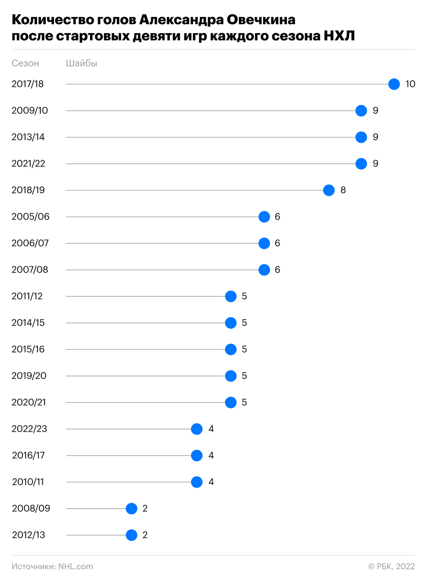 Является ли нынешний старт сезона худшим в карьере Овечкина? Капитан «Вашингтон Кэпиталз» Александр Овечкин провел один из худших стартов в карьере НХЛ. Ведущий форвард лиги последних 16 лет не смог поразить ворота в первых трех матчах, повторив худший результат в своей карьере. В предыдущий раз такое случилось в сезоне 2012/13, когда Овечкин также записал на свой счет только одну передачу в трех первых играх. В том сезоне, сокращенном из-за локаута, россиянин в итоге стал лучшим снайпером регулярного чемпионата с 32 голами. Форвард «Вашингтона» смог отметиться первой заброшенной шайбой только в четвертой игре сезона — с «Ванкувер Кэнакс». В той встрече он забросил две шайбы и сделал две голевые передачи. И в итоге был признан первой звездой дня в НХЛ. Однако следующего гола Овечкина пришлось ждать еще три матча. Российский форвард смог прибавить в конце месяца, забросив по шайбе в трех из четырех игр. На данный момент на его счету пять голов в 11 матчах. Для сравнения: с другими сезон