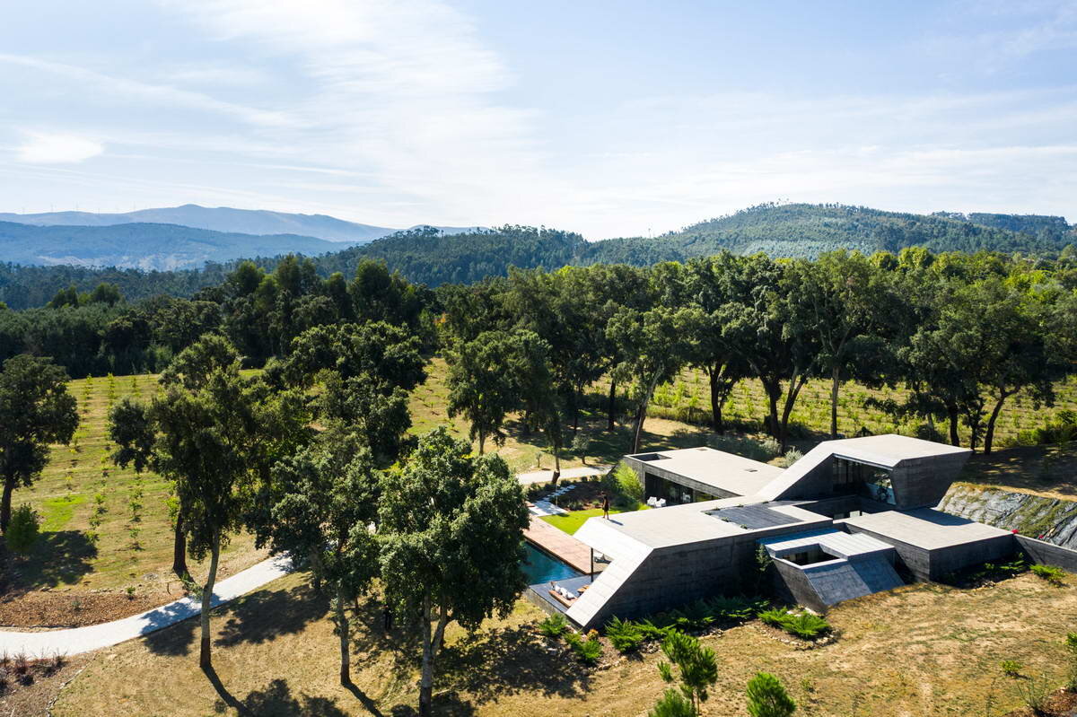 Бетонный дом с дворами среди пробковых дубов в Португалии, Загородный дом в Хорватии и Пятиугольный дом в Италии - маленькая часть нашей уникальной коллекции, в которой сейчас более 8000 лучших домов со всего мира. В выборе нет никакой закономерности - проекты отобраны случайно. 1. Бетонный дом с дворами среди пробковых дубов Португальский архитектор Хуго Перейра завершил строительство углового бетонного дома в городе Селорико-де-Башту, Португалия, с жилыми помещениями со стеклянными стенами, которые выходят на сады во внутреннем дворе и бассейн. Здание соответствует топографическим условиям участка на вершине холма, который был оставлен максимально нетронутым. Это означало строительство здания вокруг существующих деревьев пробкового дуба, что и дало проекту название «Дом пробкового дуба»... 🏡 Заинтересовал проект? Посмотрите больше фотографий и проектную графику здесь: 2. Загородный дом в Хорватии 5 Эта роскошная загородная вилла построена в на окраине небольшого села в Хорватии. Д