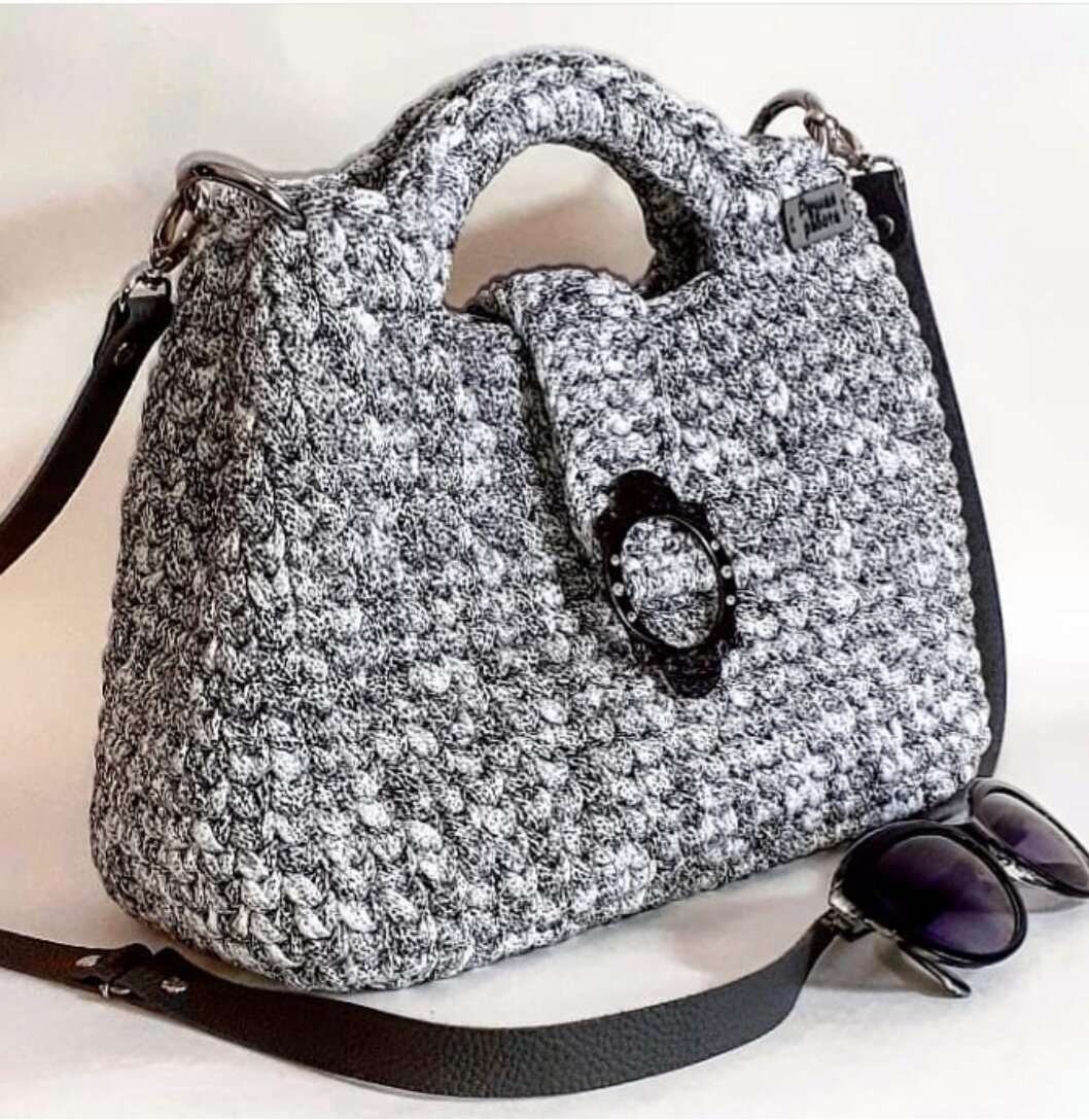 Эта сумка связана из пряжи Biskvit с принтом Велюр. Необычно, правда? Не маленькая, но элегантная... Под стать крупным женщинам. Можно, конечно, связать такую и меньшего размера... Будет смотреться? Как вы думаете? У этой, кстати, дно 30х15 и высота с ручками 28см.