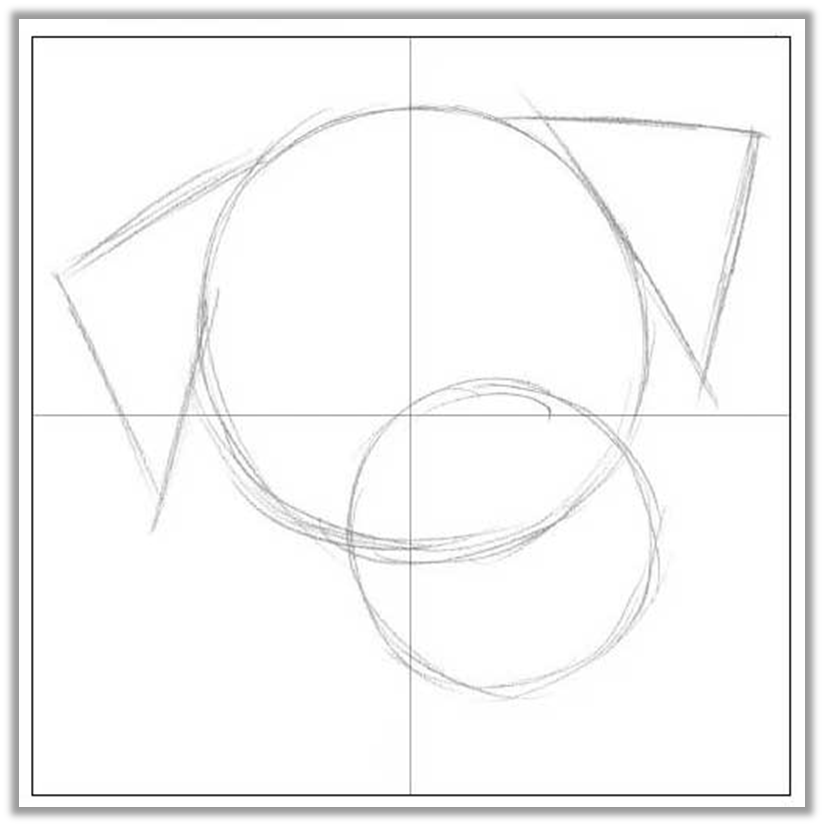 Для этого урока нам потребуются графитные карандаши, клячка, хорошая бумага. Ошибкой начинающих является не уделение должного внимания эскизу, запомните, сначала потратьте время на рисование качественного эскиза, только потом приступайте к детализации в виде теней или шерсти. Нарисуйте квадрат, разделите его пополам (не давите на карандаш, линии должны быть еле видны), после этого нарисуйте окружность (голову), затем вторую (мордочку) и схематически уши. Затем нарисуйте глаза, нос и часть тела. Нарисуйте параллельные линии, затем возьмите карандаш НВ и прорисуйте правильную форму ушей, глаз и носа. Проверьте ваши пропорции относительно квадраты, правильно ли расположены каждый элемент. После того, как вы убедились, что все правильно или исправили неточности, переходим к прорисовки. Но, перед этим вам необходимо ластиком стереть основные линии, чтоб они не так выделялись (были светлыми). Карандашом НВ нанесите штрихи по контуру головы. Шерсть мы рисуем отдельными линиями, которые ра