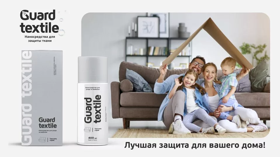 Гидрофобное нанопокрытие для ковров, мягкой мебели от компании Guard Textile. Это средство безопасно для здоровья человека, не содержит агрессивных химических средств, поэтому не вредит ткани. Покрытие следует нанести тонким слоем и дать ему высохнуть. Жидкость, жир, грязь не смогут проникнуть внутрь ткани, а из обработанной поверхности их легко удалить.