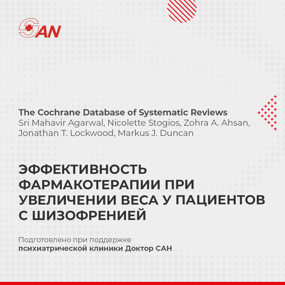 В систематическом обзоре исследовалась эффективность фармакологических вмешательств, направленных на предотвращение увеличения веса, вызванного антипсихотиками, у пациентов с шизофренией. Результаты показали, что метформин может быть эффективен в отношении предотвращения увеличения массы тела (доказательства низкого уровня достоверности). Другие агенты, которые дают некоторый эффект в отношении прибавки веса, включают антагонисты Н2 рецепторов, такие как низатидин, фамотидин и ранитидин (доказательства с низким уровнем определенности), и модуляторы моноаминов, такие как ребоксетин и флуоксетин (доказательства с низким уровнем достоверности). Топирамат оказался неэффективен в предотвращении увеличения массы тела. Для всех агентов не было различий между группами с точки зрения лиц, выбывших из исследования, или сообщений о плохой переносимости. Подробнее о лечении шизофрении: https://doctorsan.ru/lechenie-shizofrenii