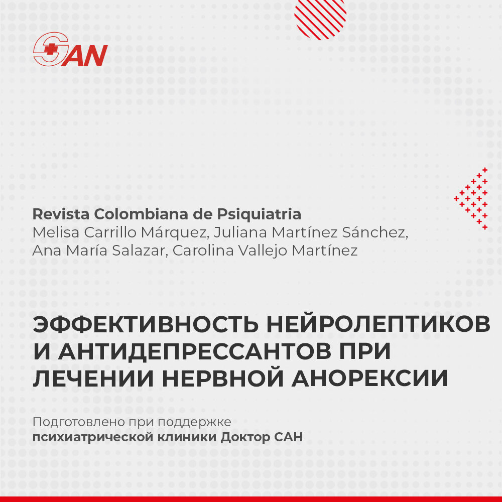 В систематическом обзоре обобщили доступные клинические данные об эффективности антидепрессантов и нейролептиков второго поколения у пациентов с нервной анорексией. Имеющиеся в настоящее время данные указывают на то, что пациенты, получающие оланзапин или флуоксетин, как правило, дольше остаются в программах лечения. Оланзапин показал благоприятные результаты (одно исследование) в отношении набора массы тела, но не показал таких же результатов в отношении психопатологии, где данные противоречивы. Подробнее о лечении РПП: https://doctorsan.ru/lechenie-rasstroystv-pischevogo-povedeniya