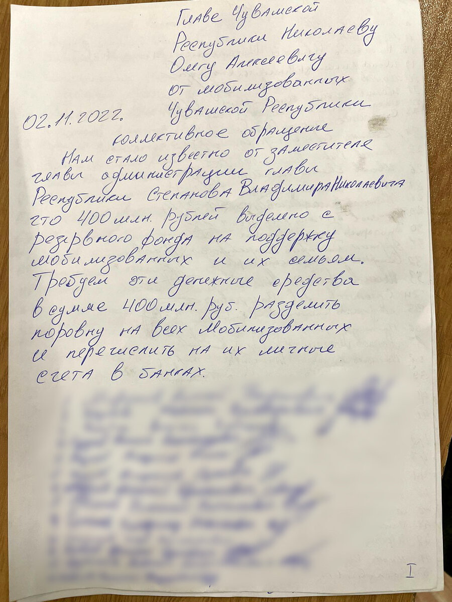 Мобилизованные требуют от главы Чувашии вместо льгот поделить поровну 400 млн
