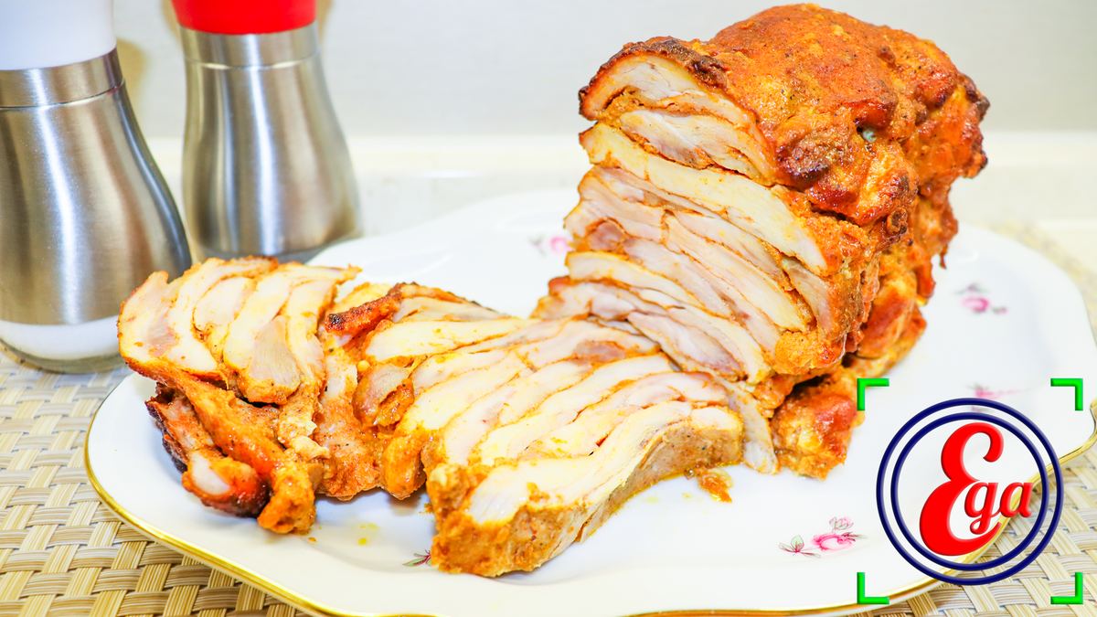 Из филе бедра курицы можно приготовить отличное запеченное блюдо, которое можно подать как в горячем, так и в холодном виде. Такая закуска оригинально смотрится на столе. А положив тонкий слайс мяса на тост – мы получим наивкуснейший бутерброд на завтрак. ! Ингредиенты в конце рецепта. Рецепт: 1. С промытых куриных бедер снимаем кожу и жир. Затем аккуратно отделяем мясо от костей. 2. Филе раскладываем на доску, накрываем пленкой или пакетом и отбиваем молоточком или деревянной скалкой. 3. В глубокую миску, где будем мариновать мясо, высыпаем порошок сухого чеснока (если такого нет, то измельчите несколько зубчиков свежего), копченую паприку, мускатный орех, черный молотый перец, по желанию можно добавить молотый острый красный перец, карри и соль по вкусу. Специи перемешиваем. Можно воспользоваться уже готовой смесью приправы для курицы. К сухим специям добавляем кефир, и все соединяем перемешивая. Маринад готов. 4. В миску с маринадом перекладываем подготовленное филе и руками перемеш