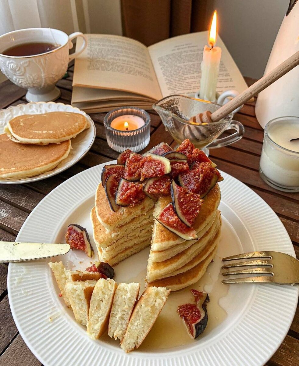 3. Жарим на сухой сковороде на маленьком огне. Переворачиваем панкейк тогда, когда начнут появляться пузырьки.