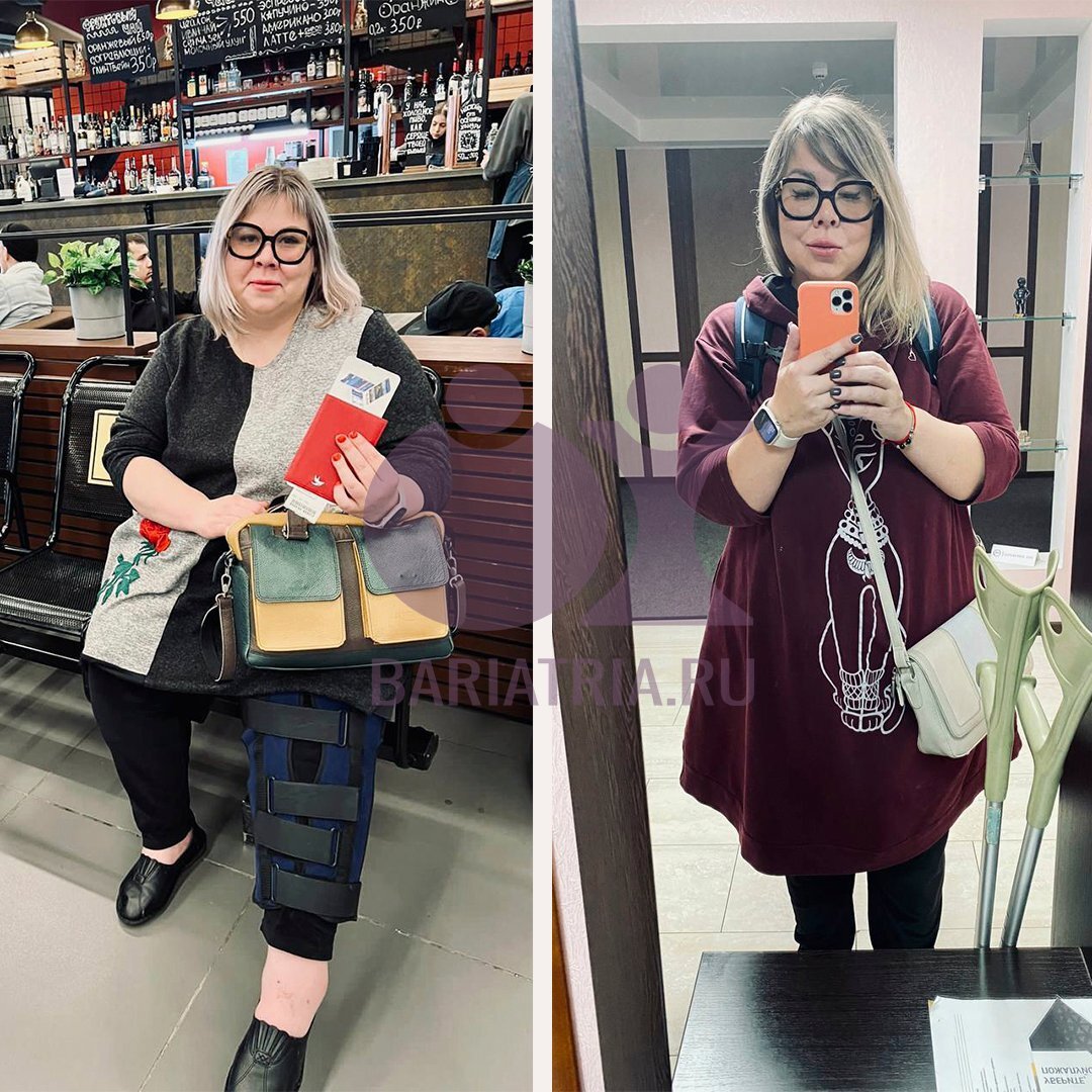 Ирина прилетела к нам на операцию с Камчатки. Изначальный вес больше 150 кг, травма ноги. Прошло 10 месяцев после операции. Похудение еще продолжается, перед Вами промежуточные результаты. но чего стоят слова самой Ирины!