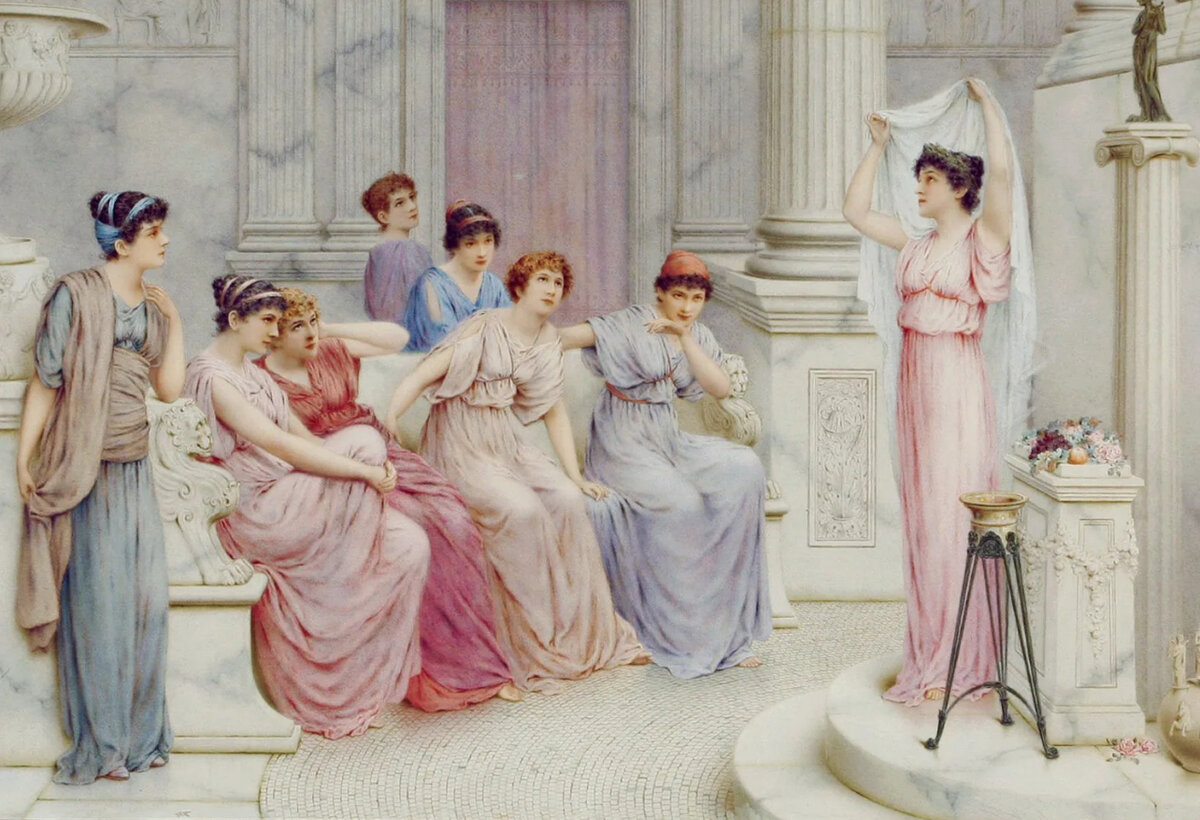 Все эллинки — свободные от супружеских уз гетеры, обремененные домашними заботами афинянки и атлетки-спартанки — уделяли своей внешности большое внимание. Красота в Греции рассматривалась, прежде всего, как признак культуры, косметика и уход за телом (по Платону)—как предпосылки для достойного человеческого существования, а тело—как зеркало, отражающее единство и совершенство мира. В одежде следовали девизу «Все в меру», не позволяя увлечь себя модной эксцентричностью, которая нарушила бы ее пропорции и гармонию. Греческий философ Ксенофон сказал: «Весьма приятно видеть хорошо подогнанную обувь... и одежду, удовлетворяющую потребностям владельца». Ласкать взор, удовлетворяя этим требованиям, женщины старались, прежде всего, правильно, «в соответствии с потребностями» выбрав ткань и цвет. Изящные хитоны из тонкого полотна, красиво подчеркивали линии тела, а более грубая одежда из шерсти — пеплос, которую надевали в холодную погоду. Сельские жительницы (как, впрочем, и в последующие в