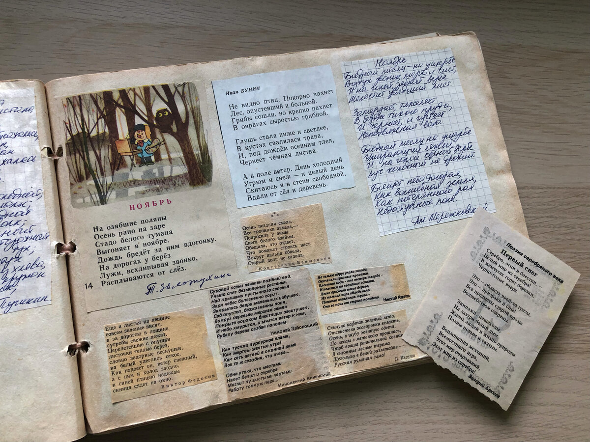 Это будет самый короткий обзор: ноябрю в альбоме посвящены всего три страницы. Подсказывайте хорошие стихи о ноябре, я их добавлю! Да уж, мало чем может вдохновить поздняя осень. Деревья голые, солнце спряталось, промозглый ветер, дождь, хмуро, серо. Прицельно сочиняют стихи про ноябрь детские поэты, которые взялись описать годовой круг, все 12 месяцев — им деваться некуда, надо выполнять поставленную задачу. Хотя в душе каждый променял бы самый лучший ноябрь на самый плохонький август. И еще — особо тонкочувствующие стихотворцы, которым требуется изобразить все оттенки грусти и беспросветности. А Пушкин и правда любит осень, и даже ноябрь — «Уж небо осенью дышало» вопреки содержанию очень жизнерадостно звучит. Бодрит, как прогулка на свежем осеннем воздухе. Там и волк прогуливается, и конь дорожный… А Плещеев боится промочить ноги. «Скучная картина! Тучи без конца, дождик так и льется, лужи у крыльца». Сложно было подбирать иллюстрации под это время года! «Скучную картину» никто не рв