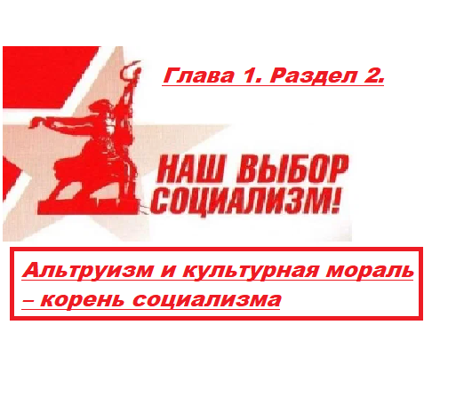 Когда противники коммунистической идеи говорят о неестественности и нежизнеспособности социализма, они кардинально ошибаются, хотя и бывают правы, отмечая отдельные недостатки и несовершенства жизни в СССР. На самом деле идеи социализма имеют естественный источник – природных альтруистов, имеющих необходимое количество наследственных задатков – генов альтруизма, которые реализуются в обостренном чувстве социальной справедливости, ответственности, правды и повышенной способности к сочувствию, состраданию, солидарности и взаимопомощи. На первый взгляд, альтруистов слишком мало (как уже говорилось, только 6%). Но в истории развития человечества этой доли вполне хватило, чтобы сформировать и распространить на все общество альтруистическую по своей сути, культурную мораль. Благодаря этой морали, твердое естественное основание социализм получает и в лице эгоистов, правда, только лишь в том случае, если социализм реален и эффективен, т.е. и экономически, и духовно повышает и защищает уровень жизни большинства.