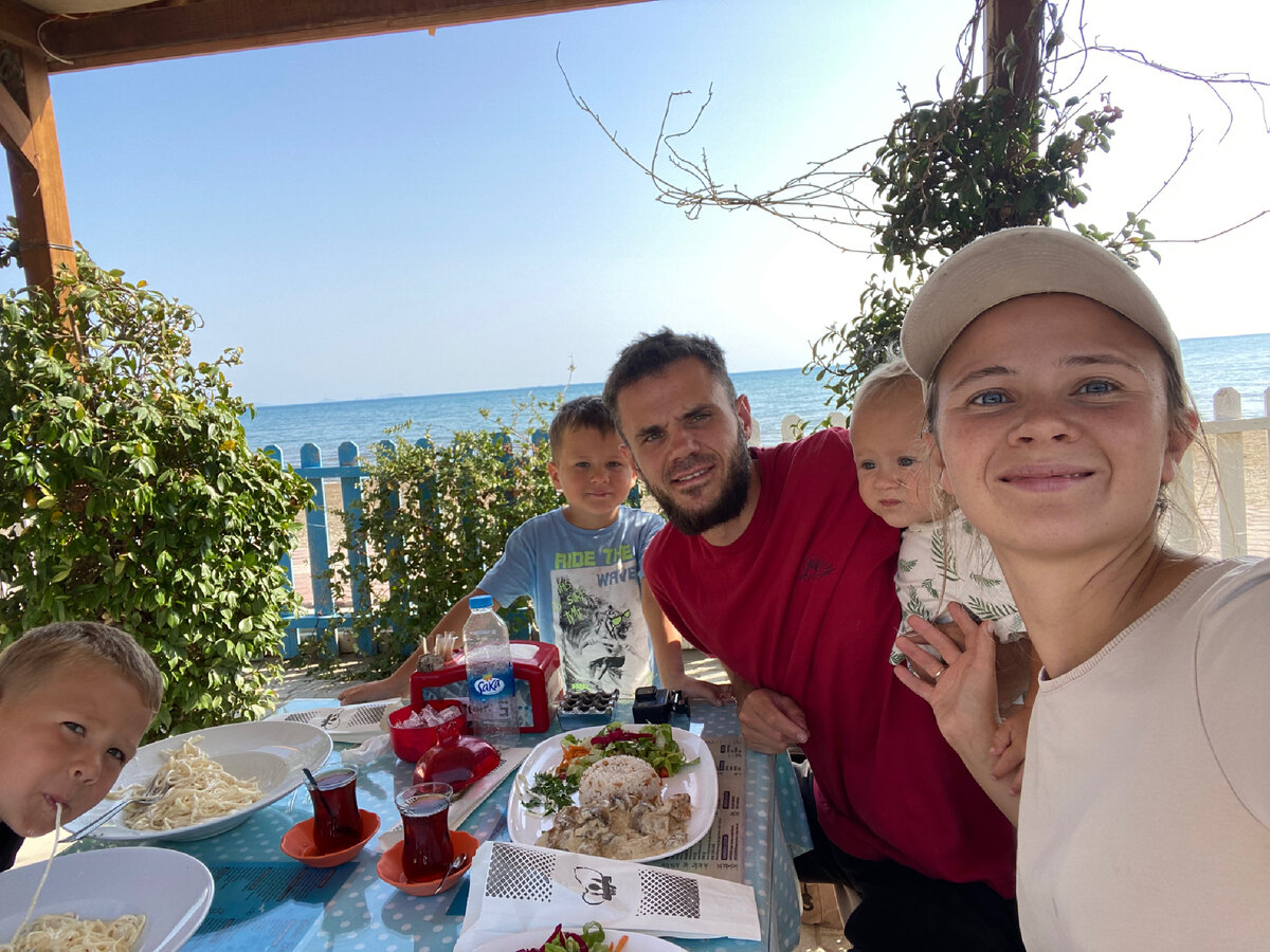 Турецкая кухня очень разнообразная и вкусная. Так сложилось исторически. Самой любимой нашей трапезой в Турции является завтрак. Kahvaltı – именно так звучит «завтрак» по-турецки. Название происходит от слов «kahve» (кофе) и «altı» (перед), что можно трактовать примерно как «еда перед кофе». Турецкий завтрак состоит из многочисленных блюд и кушаний, которые оформлены в небольшие тарелочки, при этом напоминает все это праздничное застолье. Состоит всегда из нарезки из свежих овощей, нескольких видов оливок и сыра, яйц жареных или варёных на выбор, сосисок и колбасок, сливочного масла , шоколадной пасты, варенья и джема, арахисового масла и мёда, орехов и выпечки, картофеля фри и «сигара бёрек» это трубочки из тонкого теста с начинкой из творога или ещё чего то, но очень вкусные. И конечно же чёрного чая или кофе. Цена за такой завтрак на двоих всего 150 лир, по нынешнему курсу это 525 рублей. Мы обычно берём дополнительно яичницу или омлет детям, а остального хватает с полна для разноо