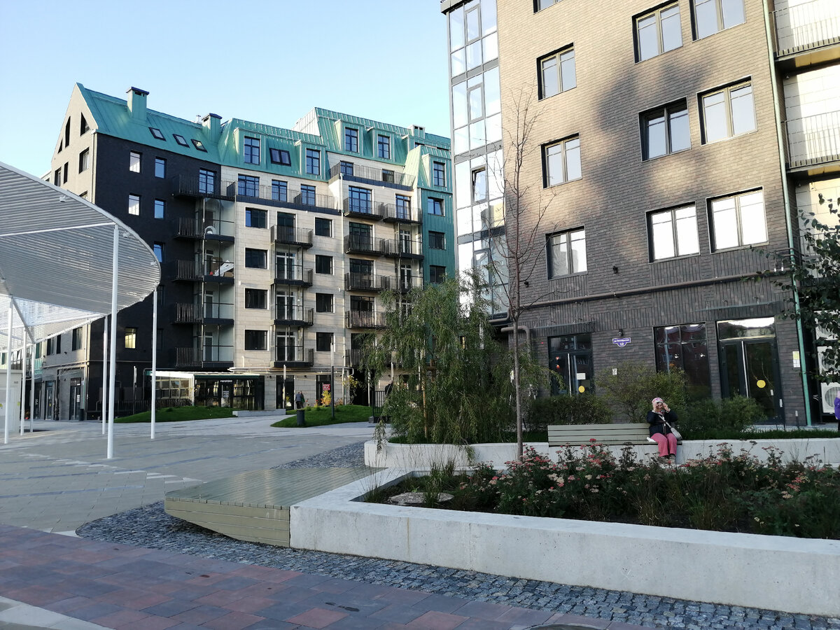 Хочется показывать не только старые улицы Калининграда, ведь есть и красивые новые. Вот недавно появилось ещё одно место для прогулок. Оно рядом с Рыбной Деревней, это Набережная Ветеранов. Набережную построили не так давно, к чемпионату Мира по футболу, но вот только сейчас закончилось строительство жилищного комплекса и Набережная наконец освободилась от строительного забора, и можно посмотреть результат. Хотя ещё не всё готово до конца, строители ещё не совсем ушли, ещё что-то доделывают. Но калининградцы и гости города уже облюбовали это место. Верхние этажи жилые квартиры, а внизу-рестораны и кафе. Я сейчас часто слышу, что туристов в Калининграде стало мало, а у самих калининградцев нет денег ходить по таким заведениям. Тогда кто там? Многие кафе открылись, людей много. Всё стильно, приятно для глаза. А мы сейчас пойдём через Преголю по Юбилейному пешеходному мосту. Мост был торжественно открыт к 750 летию города, в 2005 году. Поэтому Юбилейный. А построен он на опорах Им