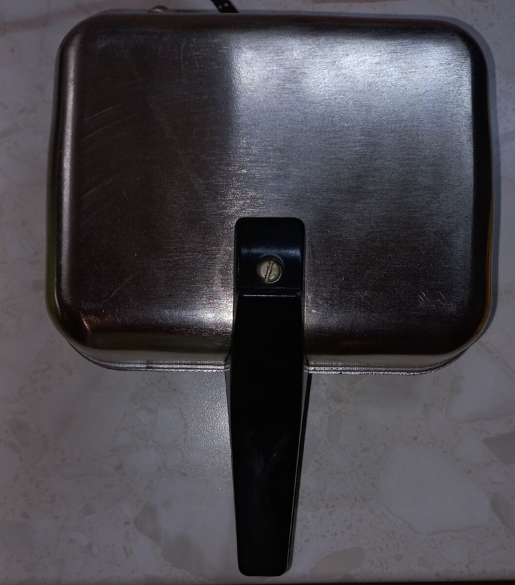 Дома есть электровафельница купленая еще в СССР. Когда то давно пекла в ней вафли. Сегодня решила вспомнить как это делается. Рецепт пришлось найти в интернете. Т.к. тот что был остался в тетради дома, а мы сейчас на даче. Тесто: 140гр. Сливочного масла 1 стакан молока 3 яйца 1/2 стакана сахара (в оригинале был 1 стакан, но и с половиной они получаются очень сладкие) 1 стакан муки с горкой Масло нужно растопить. Я это сделала в микроволновке, хватило 1 минуты. Подрждать чтобы оно остыло. Добавить молоко, сахар, яйца. Все смешать венчиком . После добавить муку, вымесить тесто до однородности. Консистенция теста получится как на жидкие блины. Включаем вафельницу, ждем когда она разогреется. И выливаем примерно чуть больше столовой ложки теста на середину. Закрываем вафельницу и ждем примерно 3-4 минуты чтобы вфелька пропеклась. Проверяем, если готова, то достаем её из вафельницы. Получается примерно такая вафелька. Её можно оставить прямой, а можно скрутить в трубочку. Если делать т