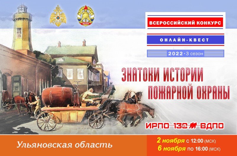 Онлайн-квест «Знатоки истории пожарной охраны. Ульяновская область» уже стартовал на портале «Пожарно-техническая выставка». Для участия – переходите на портал по ссылке ниже.