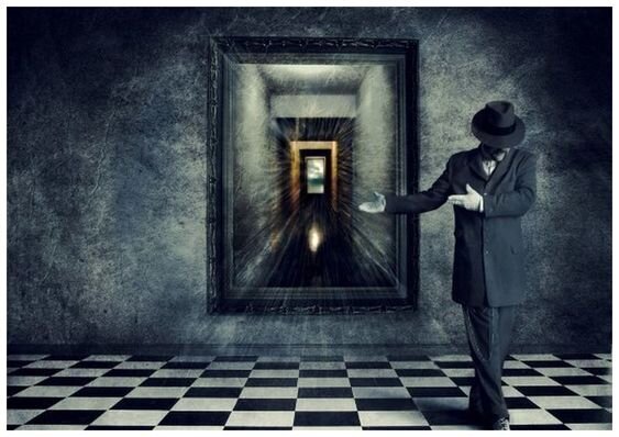 Парень стоял перед зеркалом, вглядываясь в его глубину. Внезапно в воздухе из ниоткуда, за спиной девушки появилась тень. Чёрный человек отодвинул Алину в сторону и встал перед парнем.