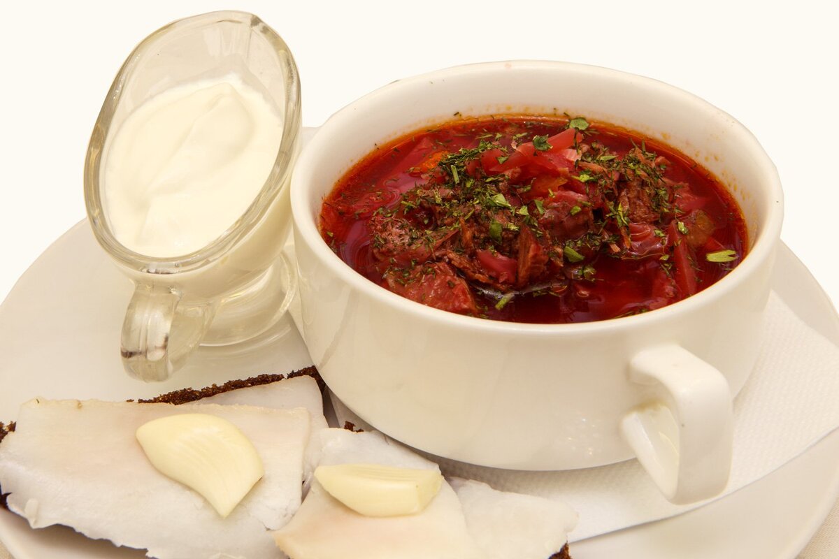Наливала она в кастрюлю холодной воды и сразу закладывала «мосольчики» трех видов: говяжьи, свиные, куриные или утиные. В это же время добавляла целую морковь и неочищенную, но хорошо промытую большую луковицу. Луковичная шелуха придает особый вкус блюду. Варила косточки часа полтора, чтобы бульон получился наваристый. В кипящую воду клала картофель, порезанный брусочками, через 15 минут добавляла нашинкованную капусту, чаще «кислую», вкусный борщ и со свежей капустой. На сковороде на сливочном масле обжаривала сначала лук и морковь, мелко порезанные, потом добавляла свеклу, 2 зубчика чеснока. Вытаскивала косточки, очищала от мяса, мелко резала и снова в бульон, затем «зажарку». И все это томилось еще минут 15 минут на печи. Печки-то в каждом доме, газа не было. Электрические плиты только в квартирах, а у нас, в частных домах, печки – голландки. К такому борщу и сметану можно не подавать для вкуса. То ли на газовой плите неравномерно все прогревается, то ли руки, я бы сказала, у меня не такие, как у нее.