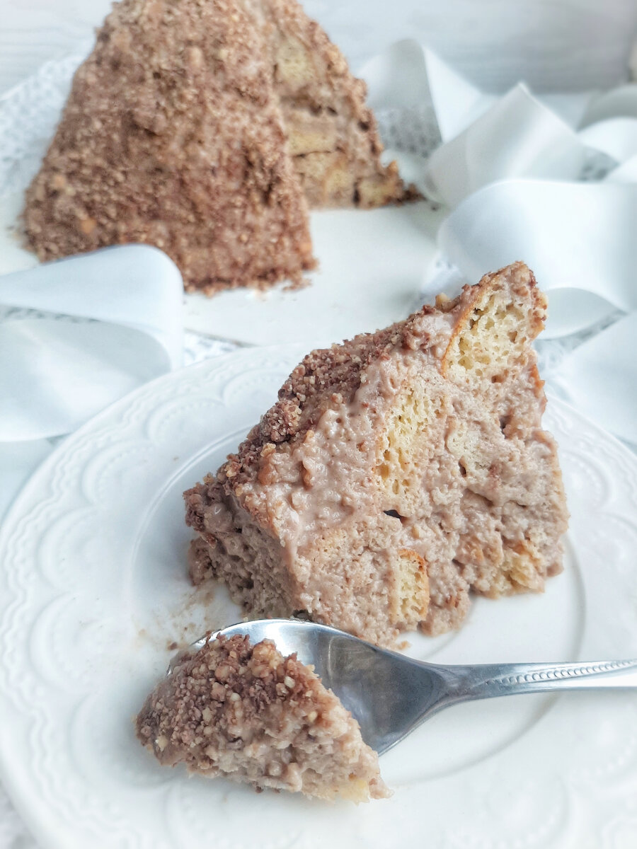 🍰КБЖУ на 100 г.: 192 ккал 10.7/5.8/23.6 Выход: 1080 г. 🍰Ингредиенты: ▫️Для основы: Творог обезжиренный - 180 г. Яйцо куриное - 2 шт. Мука рисовая - 80 г. Мука кукурузная - 70 г. Разрыхлитель - 1 ч.л. Подсластитель. ▫️Для сгущёнки: Молоко 2.5% - 600 г. Сухое обезжиренное молоко - 70 г. Крахмал кукурузный - 50 г. Кероб или какао - 10 г. Подсластитель. ▫️Для украшения: Арахис жаренный без соли - 40 г. Шоколад б/с - 40 г. 🍰Приготовление: 1️⃣ 180 г. творога и два яйца пробиваем блендером до однородной консистенции. 2️⃣ В отдельной ёмкости смешиваем 80 г. рисовой, 70 г. кукурузной муки, чайную ложку разрыхлителя и подсластитель. 3️⃣ Добавляем сухую смесь в творожную и перемешиваем. Получается мягкое тесто. 4️⃣ Выкладываем тесто на силиконовый коврик, немножко разминаем рукой, накрываем пищевой плёнкой и раскатываем в пласт. 5️⃣ Снимаем плёнку и убираем в духовку на 20-25 минут и 180°. 6️⃣ Готовый корж остужаем, делим пополам. Одну часть нарезаем кубиками, а вторую в блендере на ножах