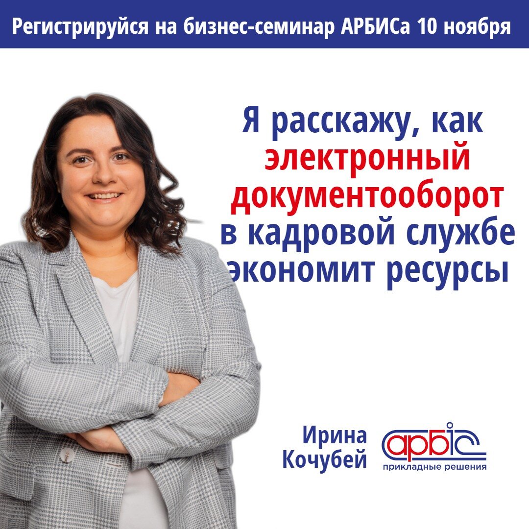 💪🏻 Кадровая служба достойна лучшего! За интеграцию электронного документооборота в будни отдела кадров отвечает сервис 1С:Кабинет сотрудника. 🧾 Расчётные листки, заявления на отпуск ⛱, уведомления и заявления теперь находятся в паре кликов от информационной базы 1С вашей организации и в смартфоне каждого сотрудника 🤳. Как это выглядит на практике, насколько легко внедряется и сколько времени и бумаги позволяет сэкономить вашим кадровикам, расскажет Ирина Кочубей на бесплатном бизнес-семинаре Арбиса. Узнавайте новое, пробуйте новое, учитесь экономить время и деньги! 📌Семинар состоится уже 10 ноября. Зарегистрироваться и узнать подробности можно на сайте семинара: https://seminar-arbis.ru/ #семинар2022 16+