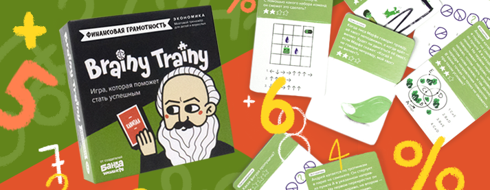 Хотите оригинальные подарки для детей сотрудников в этом году? Пишите нам 👈 Общаясь с нашими друзьями из банковской отрасли, мы поняли, что взрослым специалистам бывает непросто объяснить своим детям важные вещи из области рыночных отношений: Как правильные расчёты помогают экономить? Как работают акции в магазинах? С какими ситуациями сталкиваются предприниматели? Как устроены кредиты, доли и проценты? Что можно увидеть, глядя на график или диаграмму? Поэтому многие банки в качестве подарка для детей сотрудников выбирают нашу игру Brainy Trainy «Финансовая грамотность». Это уникальная настолка в формате мозгового тренажёра, которая позволяет в увлекательной игровой форме усваивать важные уроки из мира финансов. Brainy Trainy «Финансовая грамотность» — это практические задания с ситуациями, с которыми мы сталкиваемся почти ежедневно. Решение этих задач развивает финансовую грамотность, учит рассчитывать выгоду и принимать действительно эффективные решения, поможет освоить навыки, нео