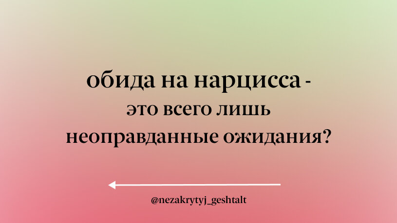 Ожидания от нарцисса порождаются самим нарциссом, он играет с вашей головой "всю дорогу", пока вы в контакте. Это ключевой момент. Вы ожидали, потому что вам ТРАНСЛИРОВАЛИ, что вы можете чего-то ожидать. На этапе сближения идет удивительная подстройка, где нарцисс транслирует вам, что он для вас - идеальный партнер, что он будет о вас заботиться, что он безопасный, что он вас понимает... что он ваша родная душа. У ваших ожиданий есть почва - все отношения с нарциссом строятся на его обещаниях и ваших ожиданиях.