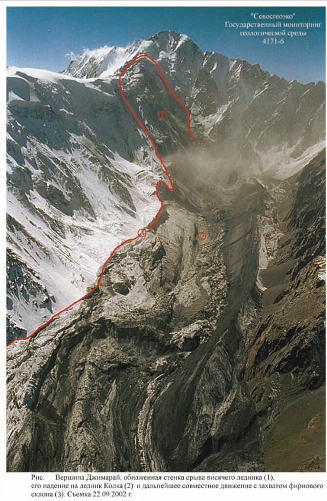 Предшествующая заметка: Казбек с севера за 4 дня. Собирая смыслы. Кармадонская трагедия 2002 года Логически завершив свое повествование о восхождение на Казбек возвращением в Кармадон, я не рассказал еще про одно событие, очевидцем последствий которого мне довелось стать и которое меня крайне впечатлило. Это, конечно же, сход ледника Колка в сентябре 2002 года. Поскольку я из поколения поживших и на момент этой трагедии мне было всего 26 лет, то я хорошо запомнил ежедневные сводки в новостях о подробностях раскопок добровольцами селевого оползня в Кармадонском ущелье. Величина трагедии на фоне пика популярности Бодрова-младшего тогда была очевидна, но на расстоянии масштаб катастрофы был мной не оценен. Итак, 20 сентября 2002 года в ущелье реки Геналдон произошел сход ледника Колка, который полностью уничтожил несколько посёлков и унёс жизни более 125 человек, среди которых была и съёмочная группа Сергея Бодрова-младшего в составе 26-ти человек, работавшая над фильмом "Связной". Сухие