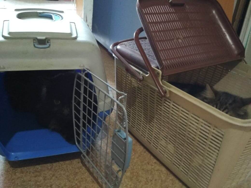 Почему в начале статьи их фото не во всей красе? А это очень примечательное фото. Вот так, сами, они упаковываются по переноскам, когда мы собираемся на дачу. Они уже два часа так сидят. Мы вместе терпеливо ждём старшую дочь из школы.