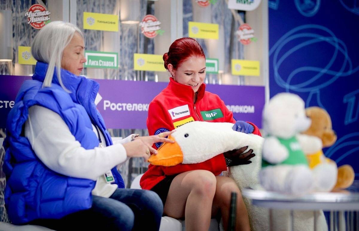 Пока она на багаже Тутберидзе? Да, сейчас мы не можем сказать, что это работа Соколовской. Внутреннее наполнение, спокойствие после программ — да, видимо, ее так настроили перед этапом. Но по поводу катания и прыжков нет еще смысла судить.