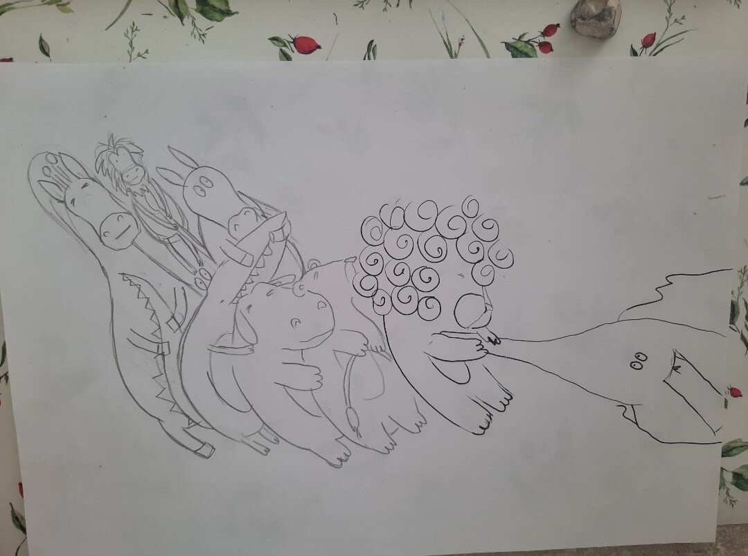 На данной иллюстрации запечатлена безуспешная попытка животных вытянуть слона из ямы. Они все вместе очень стараются, но к сожалению, слон слишком тяжёл и неподатлив) Поэтому по итогу, им потребовалось больше помощников. Изначально прорабатывали сцену в эскизе карандашом. И уже после того как эскиз нас устроил, приступили к работе с цветом. Наша художница конечно же творит чудеса, оживляя сюжет сказки в красочные иллюстрации! Сказка про Слона, которого звери из ямы выручали доступна на Android совершенно бесплатно! Скачать можно по ссылке на нашем сайте - https://сказки-дети.рф/