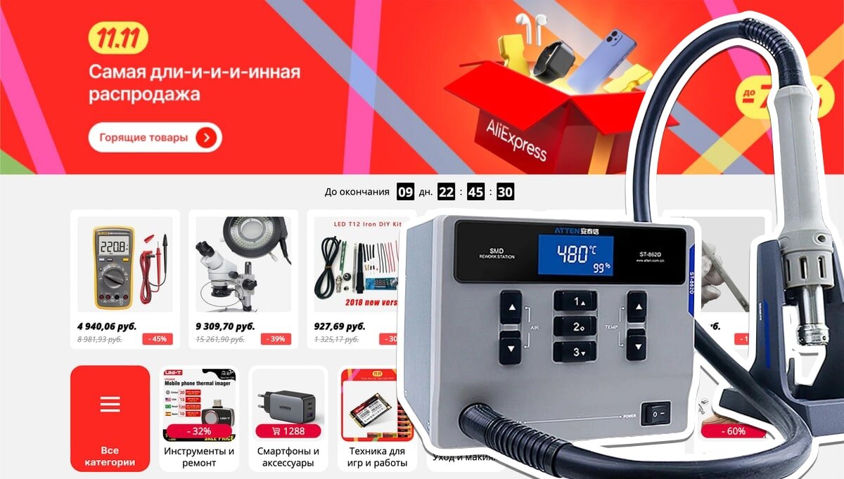 Вы наверное заметили, что у меня появилось новое хобби по радиоэлектронике. В общем, стараюсь делиться своими знаниями с такими же начинающими электронщиками. Так что подписывайтесь, если ещё этого не сделали и ваши интересы совпадают с моими. Забегая вперёд, скажу что вас ждёт много интересного, чего точно не расскажут на других каналах. Почему здесь появился данный пост про распродажу на AliExpress? Неделю назад я всё-таки съездил на обучение в BGA-центр в Питер, где понял разницу между своим простеньким оборудованием для пайки и тем необходимым минимумом для нормальной работы с современной элементной базой для ремонта компьютеров и ноутбуков. Подобрал для себя несколько инструментов для нового хобби и решил что данная информация будет интересна и читателям моего канала. Вот мой список, скажем так что получился он не совсем бюджетным, но зато это реально оптимальный уровень для нормальной работы, не уступающий зарекомендовавшим себя брендам. Я бы сказал, что это лучший выбор для тех