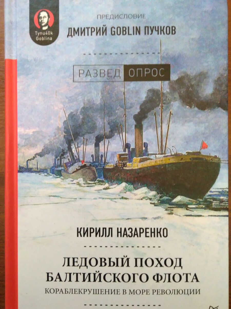 Выходные данные: Назаренко, К. "Ледовый поход Балтийского флота. Кораблекрушение в море революции. - СПб.: Питер, 2020.- 464 с. Приобрел книгу месяца три назад совершенно случайно, увидев в одном известном интернет-магазине на букву "Л". Тираж книги относительно большой - 2000 экз., да и серийное оформление притягивает взгляд. Книга выходит в серии "РАЗВЕДОПРОС", и предисловие к ней написал всем известный Дмитрий Пучков Goblin. Если говорить о причинах покупки этой книги, то их наверное три: во-первых, мне всегда была интересна история Ледового похода Балтийского флота; во-вторых, я уже приобретал книги из этой серии, и они мне в целом понравились; третьей причиной было то, что я периодически смотрю ролики на канале у Гоблина, в том числе и с данным автором - Кириллом Назаренко.