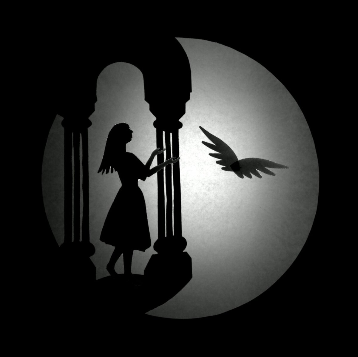 Всем добрый день! Анимационный театр теней и силуэтов - мой новый проект, который я открыла недавно. Идея о собственном театре теней возникла, когда я училась на втором курсе в Колледже искусств. А точнее - при изучении устройства сцены. А так как я занимаюсь прикладным творчеством, меня заинтересовала ещё и технология создания такого театра. На протяжении трёх лет эта мысль не отпускала меня. Хотелось воплотить в реальность синтез стихов, музыки и изображения в движении. Конечно же я делала эскизы и наброски всех деталей, потом переносила их на картон. Намучилась с мелкими прорезями, но оно того стоило. Силуэт лирической героини я рисовала с себя, а так же её лицо в профиль. Некоторые силуэты, такие, как крылья, состоят из двух деталей, из-за чего при покадровой анимации они вполне естественно двигаются. Задумка с облаками это самое первое, что пришло в голову, они состоят из обёрточной плёнки, её структура и полупрозрачность идеально подошла для них. Разная плотность бумаги, плёнки..