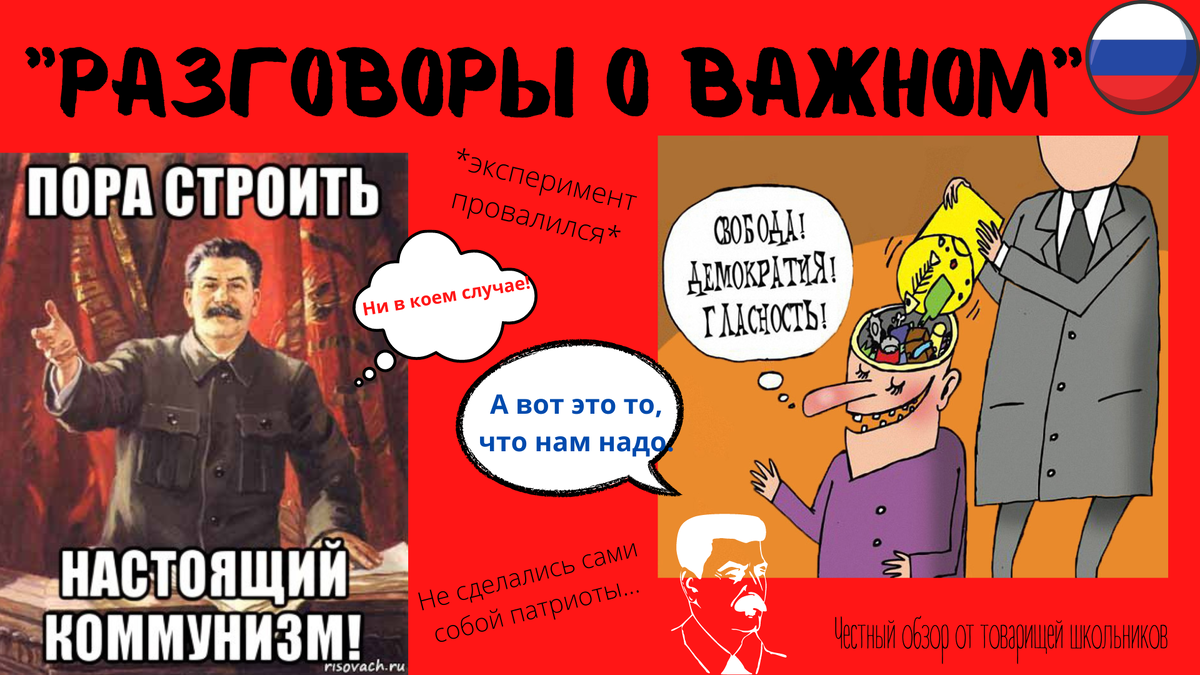 Здравствуйте, товарищи! После долгого отсутствия моего в связи с олимпиадным и общеучебным давлением возвращаюсь с новой порцией личного мнения. Сегодня мы будем обсуждать новый школьный предмет - разговоры о важном. Информация не несёт в себе цели кого-либо обидеть или задеть чьи-либо чувства. Если вы являетесь либералом или социал-демократом американского образца, лучше сразу пропустите статью. Автор с вами заранее не согласен. Немного официального о предмете «Разговоры o важном» – цикл еженедельных внеурочных занятий, построенных с учетом необходимости соблюдения единства образовательного контекста, в котором оказывается школьник или студент системы профессионального образования вне зависимости от региона проживания, гарантирующих каждому обучающемуся доступ к интересному, полезному, просветительскому контенту, идеям, основанным на традиционных ценностях Российской Федерации. По идее мы должны получить грандиозный патриотичный проект, который сделает из либероидной массы детей па