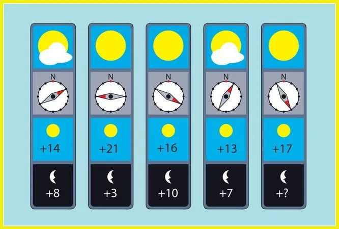 Решение загадки не самое очевидное: просто посмотрите на компас, как на часы. Стрелка с красным концом указывает на час после полудня с 13 до 24 часов ночи и соответствует дневной температуре. Серый кончик указывает на час утра с 1 до 12 дня и является ночной температурой.
