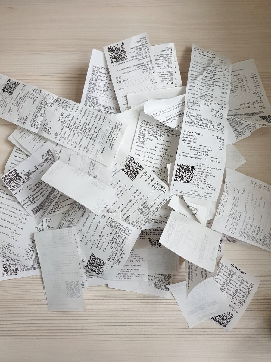 Приветствую вас, друзья. Весь октябрь я продолжала эксперимент со сбором чеков. Продуктовые собрала все (вроде бы), остальные тоже старалась не забывать и закидывать в контейнер, где все это бумажное добро хранилось. Рассортировала чеки на продуктовые и все остальные. Посчитала чеки из продуктовых магазинов. Получила траты на продукты почти 22 тыс.рублей на семью из трех человек. Честно говоря, я думала, что мы тратим на продукты больше. Прикинула, что сумма на 1 человека в месяц получается немногим больше 7 тыс. А если еще и на количество дней месяца поделить, то получается, что на каждого члена семьи приходится 236 руб. Вполне себе нормально. Забыла! Еще же влажный корм коту в эту сумму входит. Значит, на четверых делить надо😁. Чеков из раздела прочее насобиралось на 9 с небольшим тысяч. Тут аптеки, канцелярия, хозтовары, бытовая химия, кое-что из одежды, покупки для дачи и т.д. Собственно, как-то так и представлялись мне траты. Единственное, чеки в разделе прочее собраны дале
