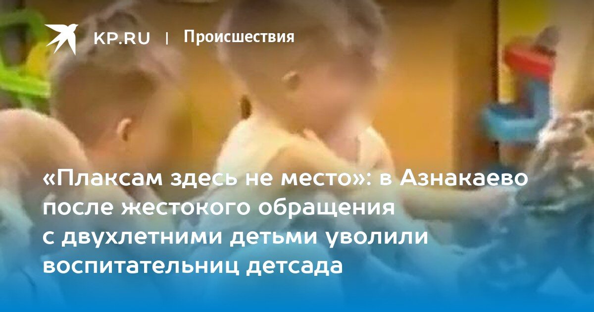 Ну, да, вот именно так воспитывают маленьких детей в одном из детских садов Татарстана! А произошло это в татарстанском селе Азнакаево. Там что-то воспитатели младшей группы детсада №6 . видимо, совсем позабыли, как подобает воспитывать детей и " придумали" свои методы воспитания. Им как-то не очень нравилось, что маленькие детки, которым всего-то по 2 годика, способны в садике без родителей всплакнуть, а потому учтивые воспитатели решили или физическую меру применять к таким малышом или вовсе выставлять за дверь группы. Никто бы из родителей, быть может, об этом страдании малышей ещё долгое время и не узнал бы, ведь двухгодовалые малыши сами об этом ещё не способны сказать. Но вдруг в этом садике появилась новенькая воспитатель. И, казалось бы, уж при новом человеке старые педагоги могли бы и постесняться так себя вести, однако, они и при ней стали демонстрировать всю мощь "своего педагогического таланта". Вероятно, хотели научить ее своему "мастерству". Только вот такое "мастер