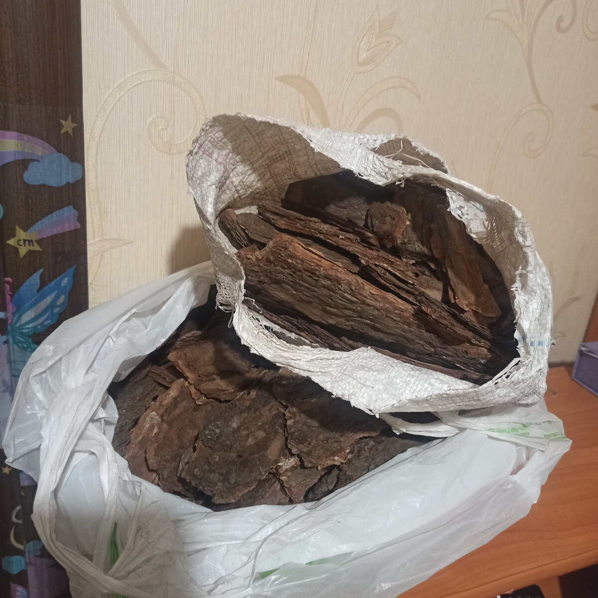 Разбирая свои бурундучьи закрома в цветочном хозяйстве обнаружила старые запасы сосновой коры, набранной в лесу пару лет назад.