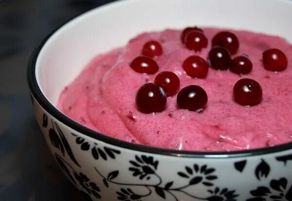 100 г (4 ст. ложки) манной крупы, 100 г клюквы, 200 мл сливок, 1/2 л воды, 3-4 ст. ложки сахара.