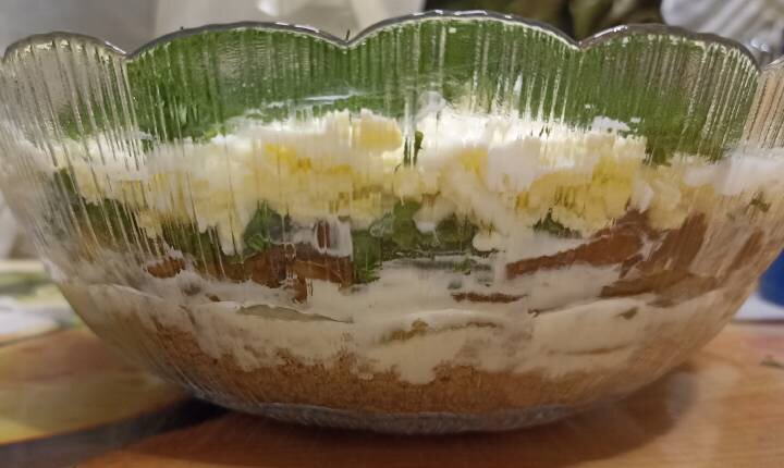 Предлагаю еще один интересный рецепт салата из печени. Печень для этого салата натираем на терке, поэтому получается он «воздушный» и нежный. Нам потребуется: Печень отвариваем в соленой воде и натираем на крупной терке. Печень для этого салата можно взять любую на ваше усмотрение: свиную, куриную или говяжью. С куриной получается вообще очень нежно! У меня сегодня печень свиная. Яйца отвариваем и тоже трем на терке. Грибы режем брусочками. Грибы тоже можно взять абсолютно любые, соленые или маринованные. У меня маринованные рыжики. Количество грибов не указываю. Это зависит от размера вашего салатника. Измельчаем зеленый лук и укроп. Репчатый лук режем полукольцами и обжариваем на растительном масле. Теперь осталось собрать наш салатик 1 – печень Солим (если требуется) и смазываем майонезом. Стараемся сильно печень не приминать, чтобы она осталась «воздушная». При желании можно поперчить. 2 – репчатый лук Остывший обжаренный лук выкладываем на печень, убрав лишнее масло. Солим и нем