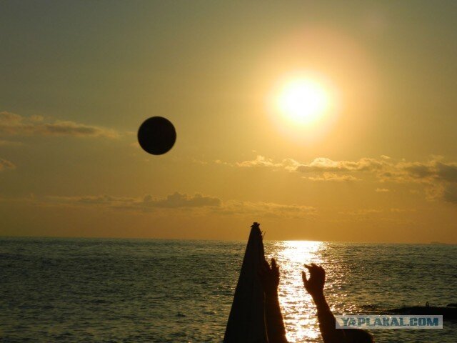 В Гаграх нам повезло, граница туч и ясного неба проходила прям по пляжу, поэтому мы дождались сансета и пошли на ужин.