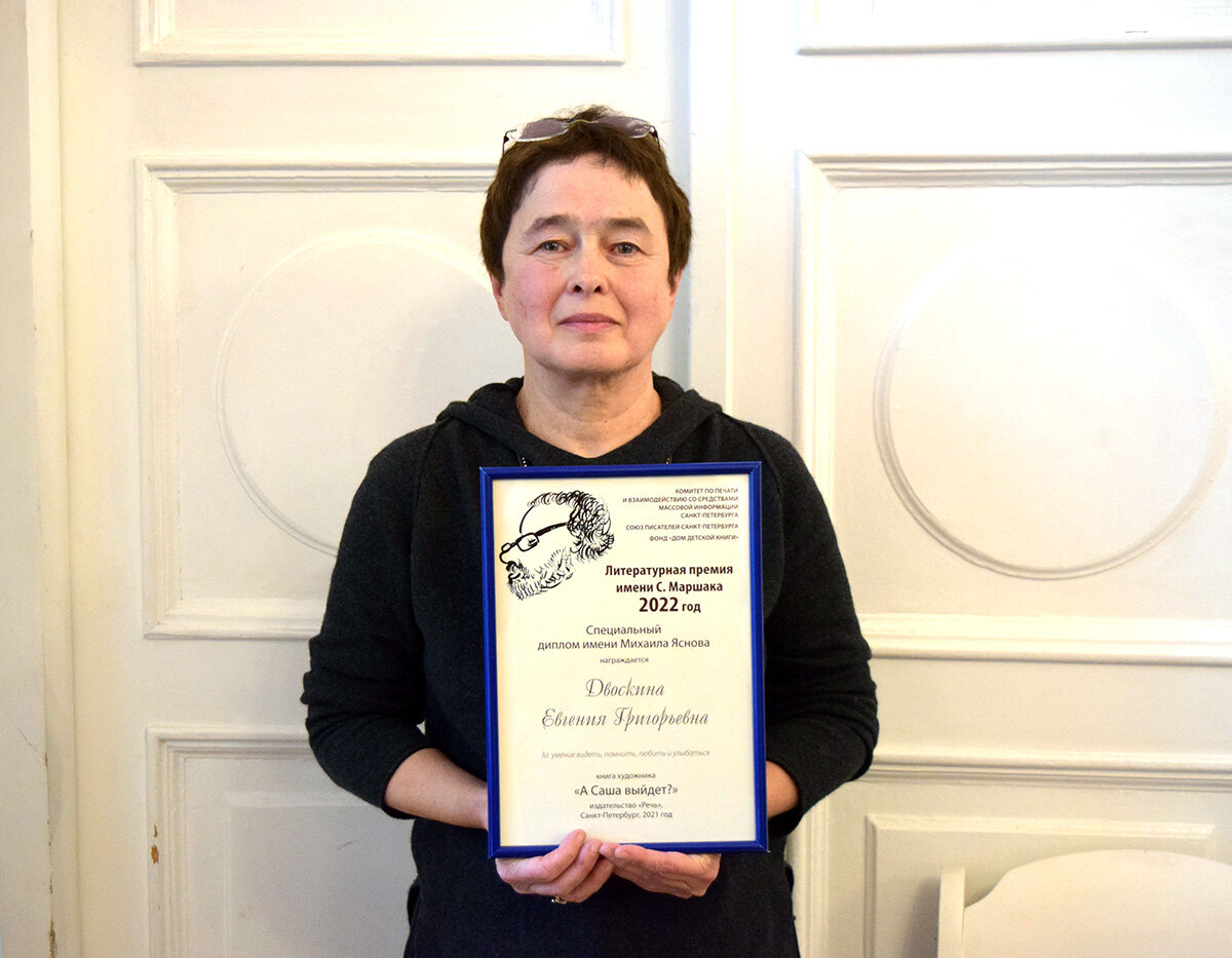 Его получила Евгения Двоскина - автор и иллюстратор книги "А Саша выйдет?" Мы очень рады за Евгению Григорьевну и от всей души благодарим жюри премии за то, что они выбрали книгу нашего издательства.