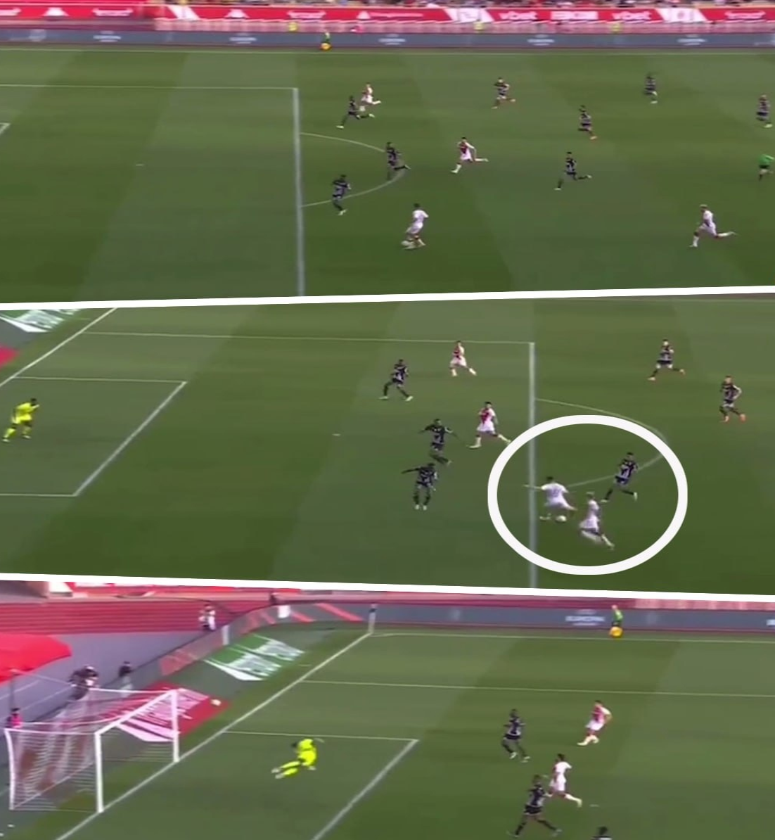 - "Монако" открыл счет только на 54-й минуте (забил Бреэль Эмболо), сразу после этого Минамино заменили на Головина – Александр вышел добивать худшую команду Лиги 1. И справился! На 70-й полузащитник получил пас от Кевина Фолланда перед штрафной и влепил в дальнюю девятку. Красиво!