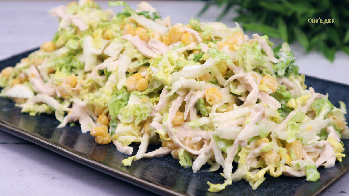 Салат с куриным филе и пекинской капустой ем даже, как полноценный ужин, потому что сытный получается, но в то же время лёгкий. Готовим 👨🏻🍳 Подробный видео рецепт и ингредиенты можно посмотреть в конце статьи⤵️ Пекинскую капусту нашинкую тонкими полосками. Добавляю к ней отварное куриное филе или филе индейки. Его нужно заранее разобрать на волокна. Высыпаю консервированную кукурузу, я взяла одну банку. Яйца отвариваю, очищаю и нарезаю тонкими полосками. Все ингредиенты смешиваю. Затем готовлю заправку. Смешиваю сметану, майонез, соль, чеснок пропущенный через пресс и черный молотый перец. Майонез можно полностью заменить сметаной. Заливаю салат заправкой и смешиваю. Такой салат отлично подходим на ужин и даже на праздничном столе хорошо смотрится. ВИДЕО РЕЦЕПТ ⤵️ 📖Ингредиенты: Капуста Пекинская: 200г Кукуруза консервированная: 1б (300г) Куриное филе (или индейки): 200г Яйца: 2шт Сметана: 1ст.л Майонез: 1ст.л (можно заменить только на сметану) Чеснок: 1з Перец черный молотый и сол