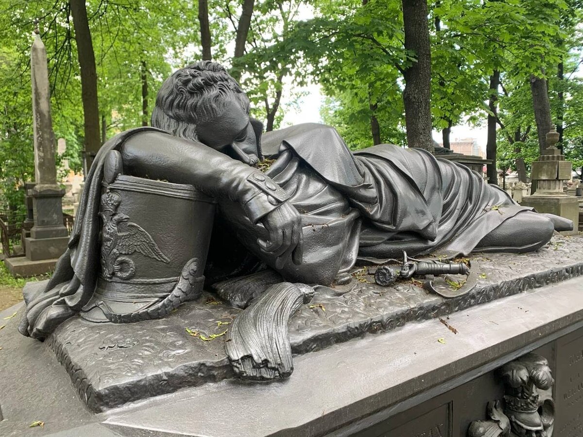 Честно говоря, даже сам я долгое время верил легенде о том, что один офицер неудачно задремал на карауле в Зимнем дворце, а когда проснулся, увидел над собой Николая Павловича. И то ли взгляд императора был настолько грозен, то ли офицеру стало настолько стыдно, что в тот же миг он отправился на небеса. А в память об этом на одном из петербургских кладбищ появился памятник с лежащим офицером. Его и сейчас можно увидеть в Александро-Невской лавре, куда его перенесли, как одно из произведений монументальной скульптуры. Эту легенду обязательно рассказывают экскурсоводы, когда водят доверчивых туристов по некрополю Александро-Невской лавры. Да я и сам бы рассказал, потому что как же не верить мемуарам генерала Геруа, они ведь в целом очень даже толково и информативно написаны. А в них четко сказано: «По поводу караульной службы при Николае I вспоминаю надгробный памятник на Волковом кладбище в Петербурге. Показывал мне его отец, когда мы ездили с ним на поклонение могилам его родителей и п