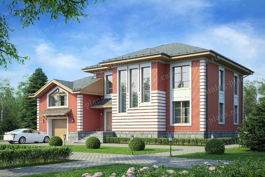 Данный проект двухэтажного кирпичного дома интересен не только своим внутренним наполнением, но и наружной отделкой. Обратите внимание на фасады, которые облицованы кирпичом в сочетании с мансардной крышей, покрытой мягкой черепицей. Главным акцентом центрального фасада является изящный эркер с каскадными окнами. Дом запроектирован из поризованного кирпича толщиной 510 миллиметров с 50 миллиметровым утеплителем. Общая площадь дома: 358 квадратных метров, а габаритные размеры: 19х20 метров. В качестве фундамента и перекрытий дома архитекторы отдали предпочтение монолитному железобетону. В доме имеются такие пространства, как: помещение для отдыха с бассейном, просторная терраса, кабинет, гараж и тренажерный зал. Все пространства расположены очень грамотно относительно друг друга. К примеру, из тренажерного зала на втором этаже вы сможете спуститься в пространство с бассейном на первый этаж и поплавать после тренировки. Из гостиной можно подняться сразу на второй этаж в любую из спальн