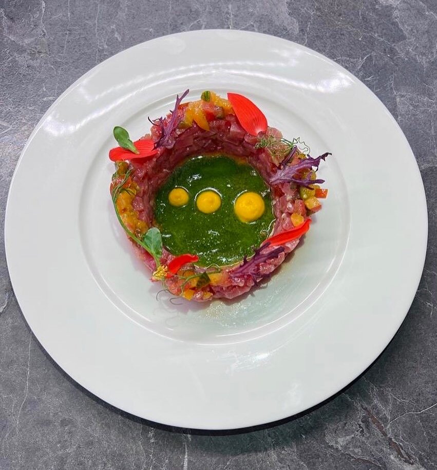 Тартар из тунца с вялеными томатами,соусом из щавеля и пюре манго,это очень вкусно. Буду делится с вами моими рецептами!