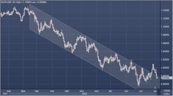 Отчет по рынку труда будет опубликован 4 ноября, данные по инфляции — 10 ноября. Они сыграют решающую роль в оценке рынком дальнейших действий ФРС. График евро/доллара интервалами в 1 день Доллар ощущал себя «на коне» в четверг по итогам состоявшегося накануне заседания по ставкам ФРС. Валюта США укрепилась против всех конкурентов, а индекс доллара, достигнув максимума с 21 октября, закрылся на самом высоком уровне с 14 октября, то есть на пике за 3 последних недели. В преддверии публикации в пятницу данных по занятости в США по итогам октября рынки акций в Европе и США заметно просели в четверг, а доллар получал выгоду со стороны бегства инвесторов от рискованных активов. Фунт подешевел в четверг против всех основных валют, поскольку Банк Англии, повысив, как и ожидалось, ставку на 0,75%, сигнализировал о замедлении темпов повышения ставок. Сигнал регулятора сильно разошелся с ожиданиями рынка. «Банк Англии предоставил рынку четкое голубиное заявление — он снова существенно понизил пр