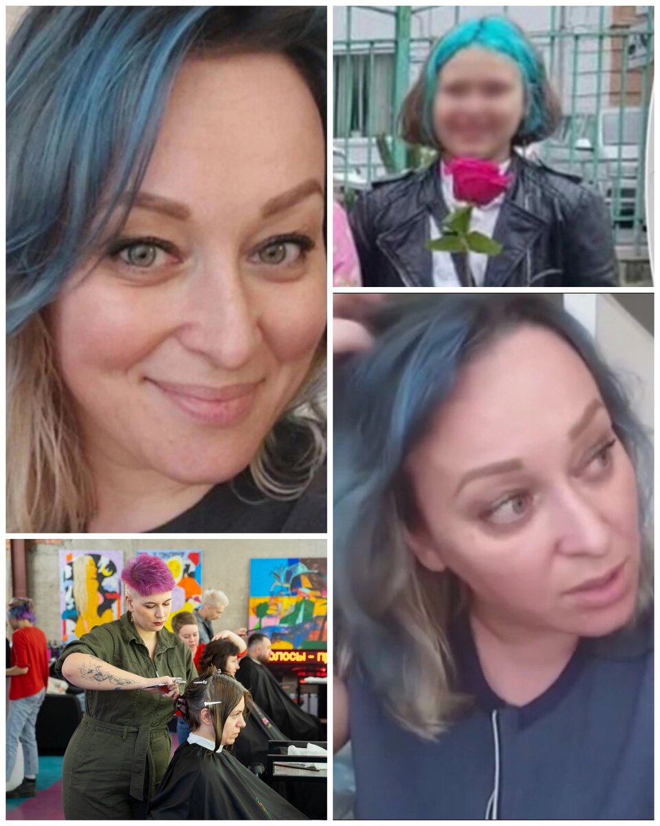 В Красноярске мама перекрасила волосы в синий цвет в знак протеста против требования учителей о «нормальной» прическе дочери.
