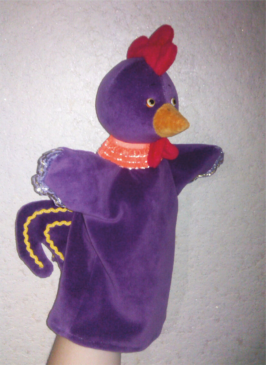 Татьяна Браженкова Давайте вместе сошьём куклу-перчатку Петушка. Добавив к нему еще одного-двух героев, можно устроить сказочное представление в домашнем кукольном театре. Для работы нам понадобятся следующие материалы: 1. Раскроите все детали, как указано на выкройке. 2. Пришейте тесьму-зигзаг на обе детали хвоста соблюдая направление "перьев" хвоста. Можно предварительно их приклеить, для удобства. Приметайте присборенную ленту к крыльям. 3.Сшейте обе половинки задней части туловища между собой. Хвост выверните и отстрочите его по основанию. 4. Теперь сшейте между собой переднюю часть туловища-перчатки и получившуюся заднюю часть. Сделайте насечки в местах скруглений и углов. Выверните, расправьте шею, крылья. Нижний срез подогните и застрочите. 5. Далее зашейте вытачки на деталях головы. Вшейте детали клюва. Сшейте гребешок и бородку, выверните. 6. Приметайте бородку и гребешок к голове. И сшейте голову. Выверните. 7. Набейте голову синтепухом. Ножницами аккуратно проделай